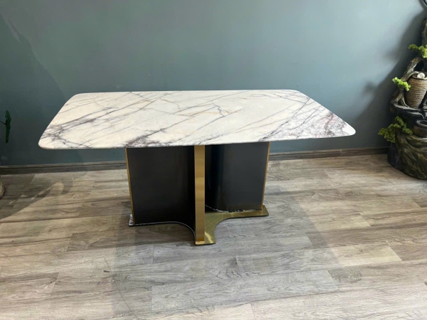 7. Bàn ăn mặt đá kết hợp kim loại: