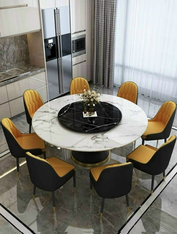 Bàn Ăn Tròn Mặt Đá Xoay - BC08