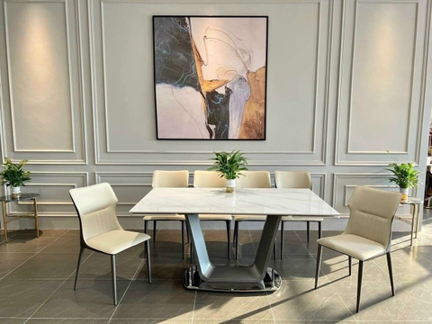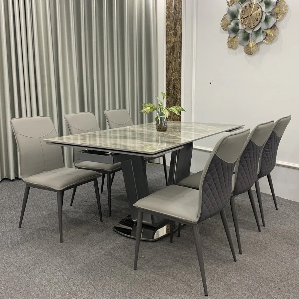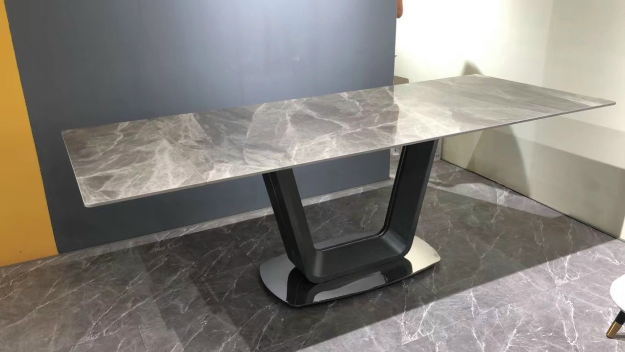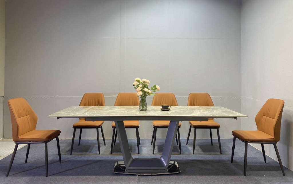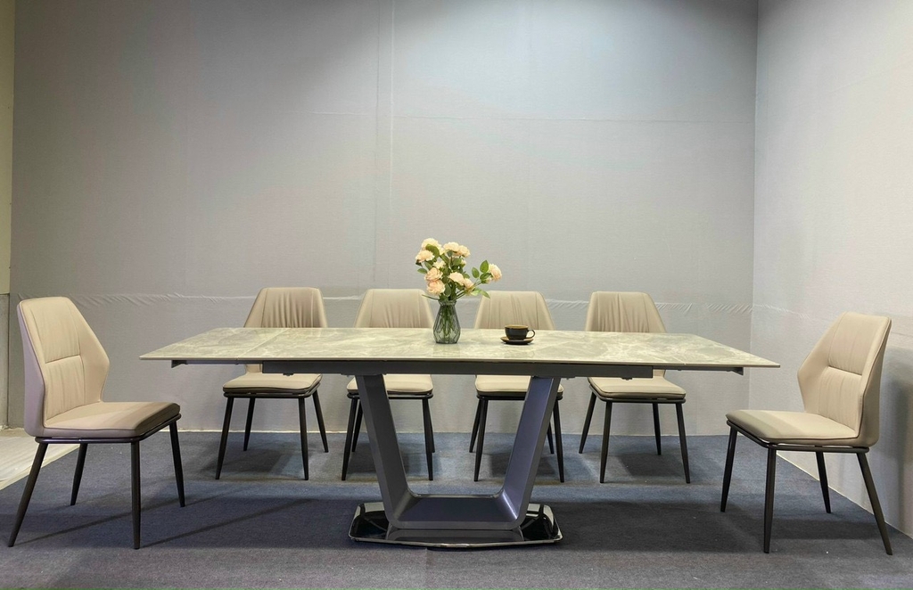 Mẫu bàn ăn mặt đá Ceramic kéo dài chân sắt sơn tĩnh điện BAMD50