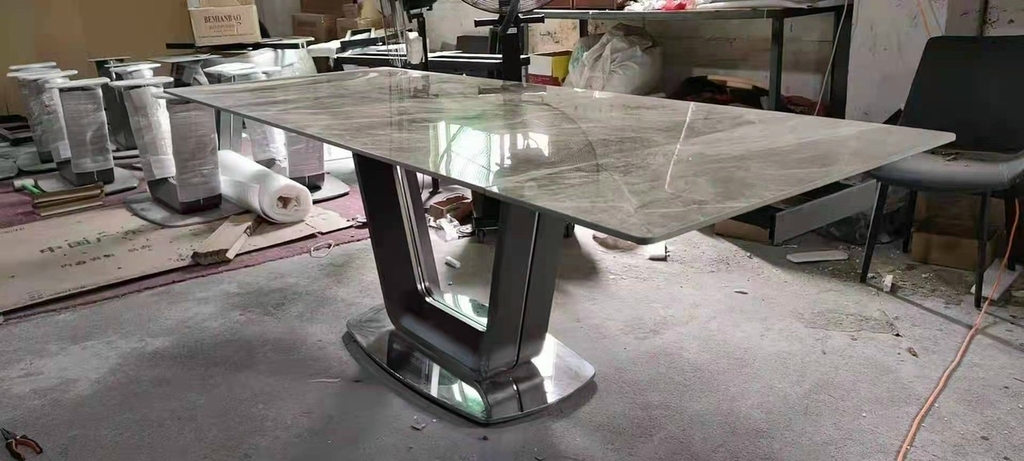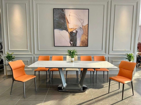 - Kết hợp giữa những đường vân tự nhiên, nghệ thuật cùng với khung chân sắt kết hợp Inox sang trọng, nhưng cũng không kém phần năng động, mẫu bàn ăn nhập khẩu này khá phổ biến để có thể dùng trong nhiều phong cách nội thất khác nhau, mà đặc biệt là với xu thế hiện đại hóa, thị hiếu của khách hàng đang hướng tới sự hiện đại, đơn giản, chú trọng đến công năng là chính thì những mẫu bàn ăn chân sắt này lại càng được ưa thích hơn.