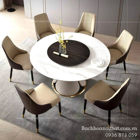 Chất liệu: mặt đá phiến Ceramic, thân sắt bọc da, đế bàn Inox