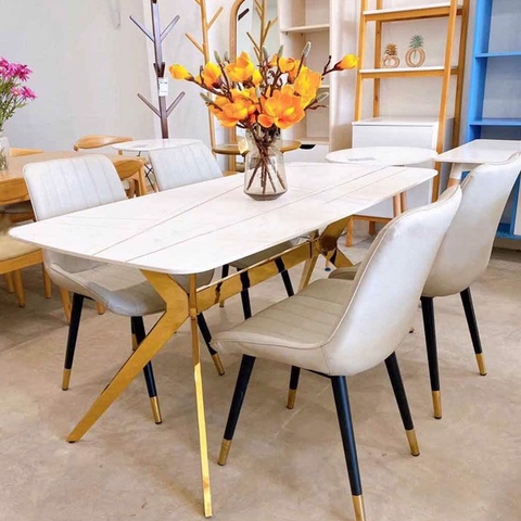 Đánh giá BÀN ĂN MẶT ĐÁ CHÂN CÁ INOX MẠ PVD - BAMD112