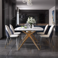 BÀN ĂN MẶT ĐÁ CHÂN CÁ INOX MẠ PVD - BAMD112