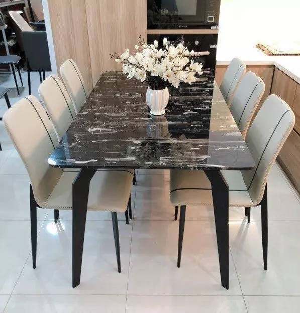 Chất liệu: mặt đá Ceramic, chân sắt cắt CNC sơn tĩnh điện