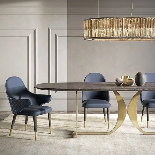 Hình 2: Mẫu bàn ăn khung sắt mặt đá hoa cương hiện đại có thể kết hợp với ghế ăn bọc da nhập khẩu chân sắt ống đồng