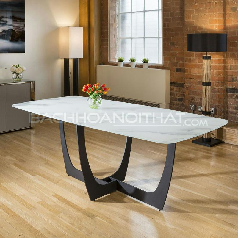Mẫu Bàn ăn mặt đá Ceramic chân sắt cắt CNC