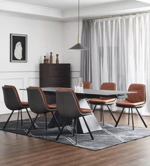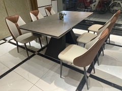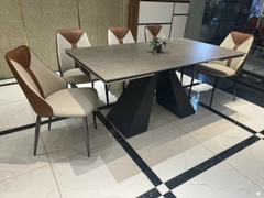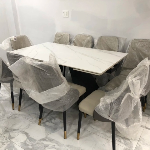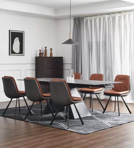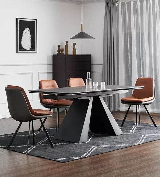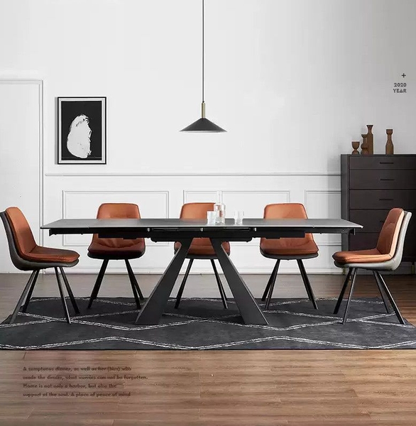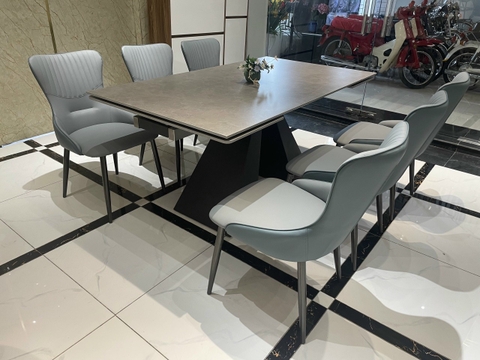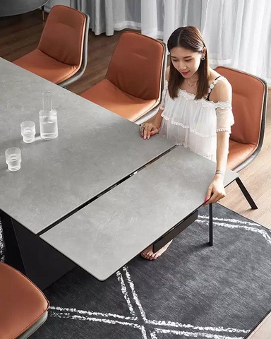Bàn ăn mặt đá Ceramic kéo dài chân sắt sơn tĩnh điện