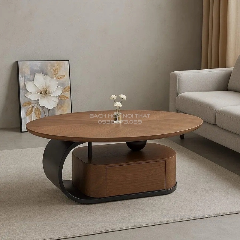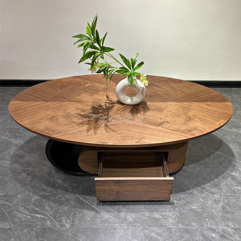 Bàn trà Oval gỗ nhập khẩu BT318 là sự giao thoa hoàn hảo giữa phong cách hiện đại và nét đẹp cổ điển của vân gỗ. Đây chắc chắn là món đồ nội thất nâng tầm đẳng cấp cho căn hộ hoặc biệt thự của bạn