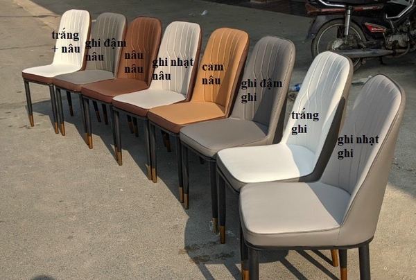 2.1 Chất liệu: mẫu ghế ăn bọc giả da PU, kết hợp chân sắt sơn tĩnh điện
