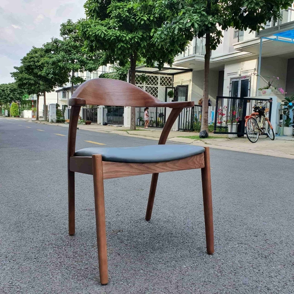 2.1 Chất liệu: ghế hiroshima tựa cong cũng được sản xuất hoàn toàn từ gỗ tự nhiên - gỗ ash. Mẫu ghế ăn này được cách điệu từ mẫu ghế hiroshima truyền thống với phần tựa được uốn cong nhẹ bằng kỹ thuật phức tạp hơn.