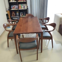 Bộ bàn ăn neva gỗ tự nhiên 6 ghế hiroshima tựa cong bao gồm: