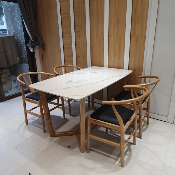 - Kết hợp bàn an mặt đá chân gỗ concorde và ghế ăn wishbone gỗ tự nhiên đan dây huyền thoại.