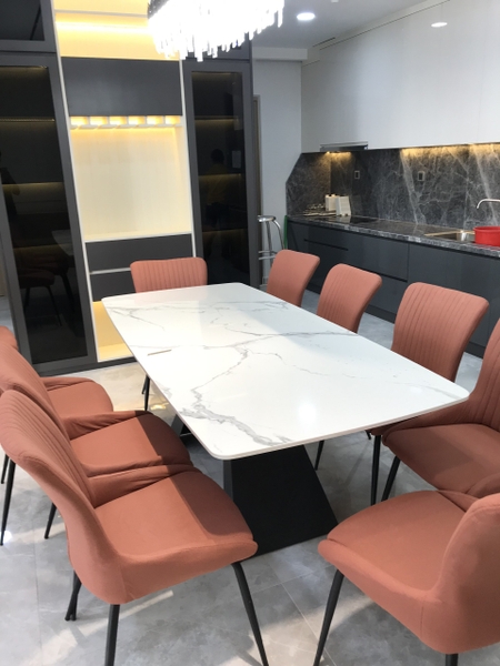 Hình 2: Bàn ghế ăn mặt đá hiện đại thực tế giao khách tại Quận 2, Tp.HCM