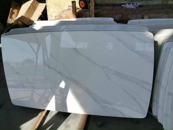- Bàn ăn mặt đá trắng vân mây kích thước 1.4 met, mặt đá ceramic dày 10mm, chống thấm rất tốt