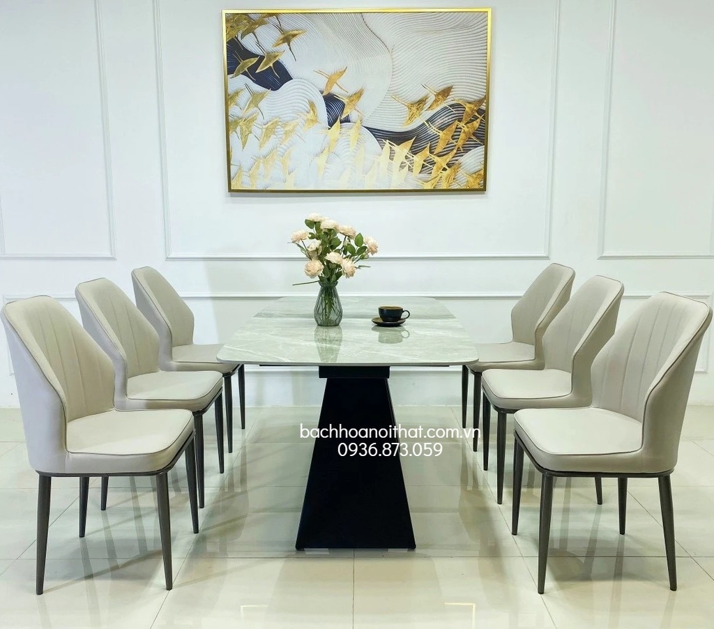 1. BÀN ĂN MẶT ĐÁ CERAMIC CHÂN SẮT CHỮ A: