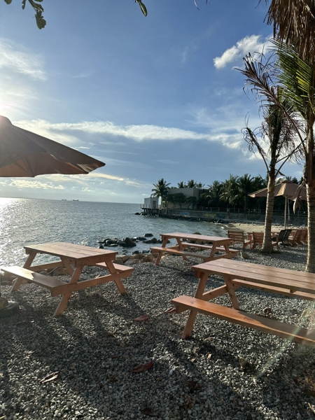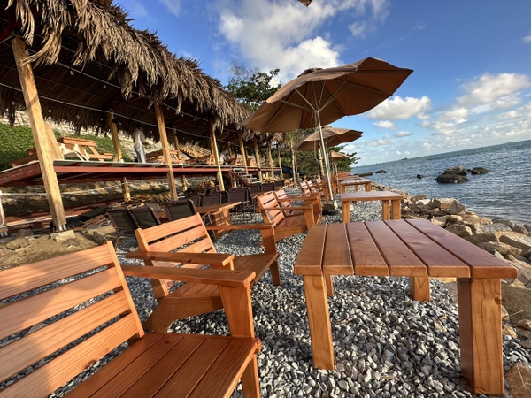 Hình 4. Bộ bàn ghế gỗ dùng cho quán cafe bên bờ biển Vũng Tàu T7.2023