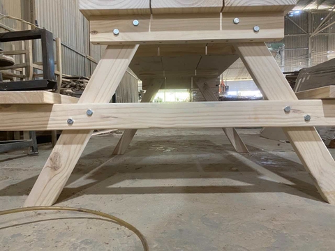 Bộ bàn ghế gỗ thông phù hợp sử dụng làm bàn ghế sân vườn ngồi uống trà, cafe, làm bàn tiệc nướng bbq ngoài trời