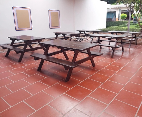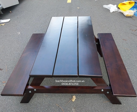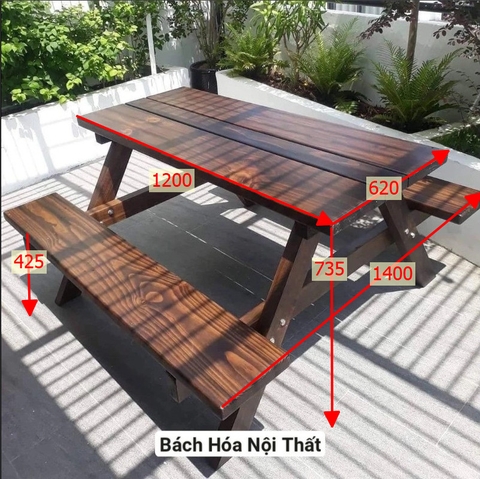 Kích thước bàn D-R-C (mm): 1200*1400*750 kèm 2 băng ghế D-R-C (mm): 1200*240*450