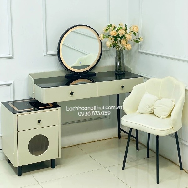 Bộ bàn phấn trang điểm có chức năng: Loa, sạc cảm ứng, sạc không dây