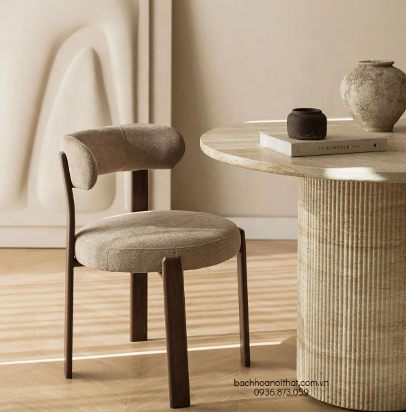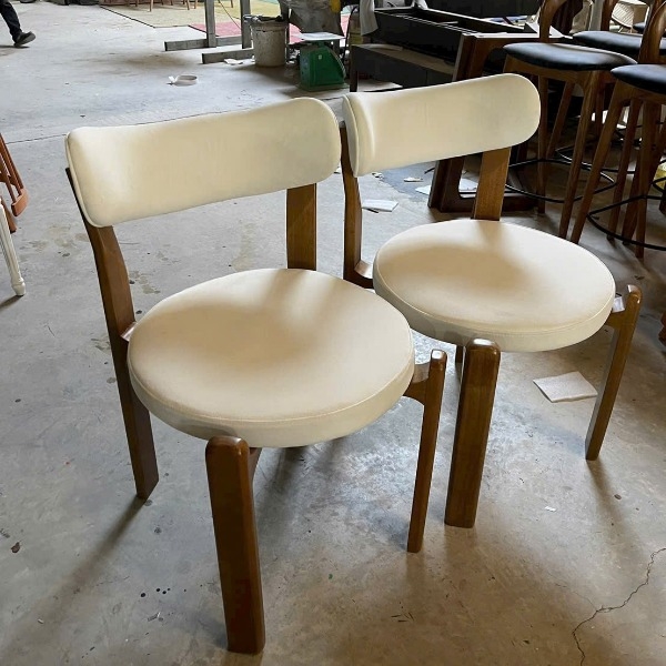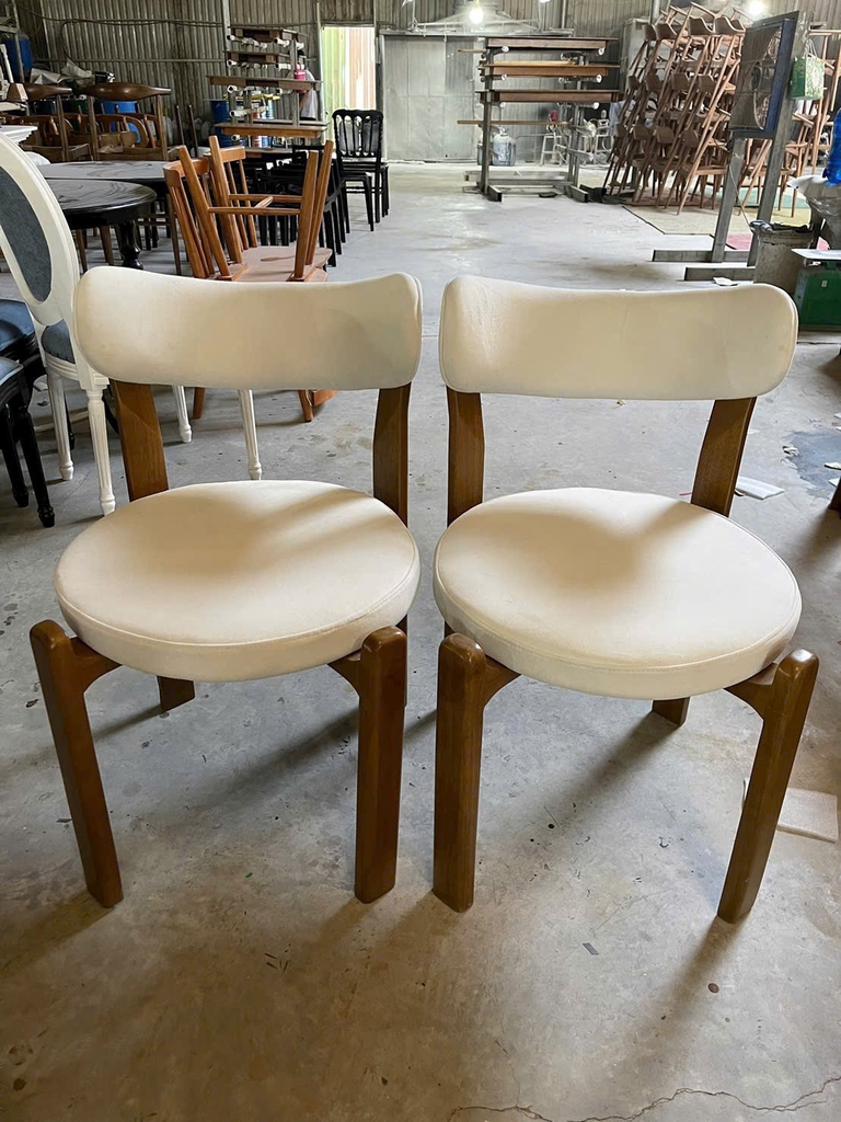 1. Chất liệu: Gỗ cao su, mặt ngồi và tựa lưng bọc nệm
