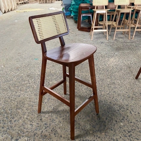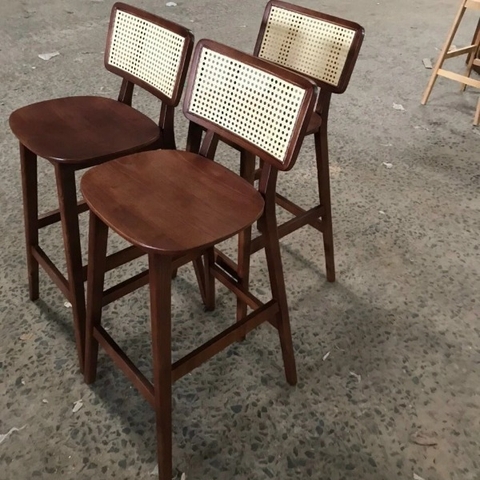 GHẾ BAR MẶT GỖ LƯNG TỰA ĐAN MÂY - BAR22