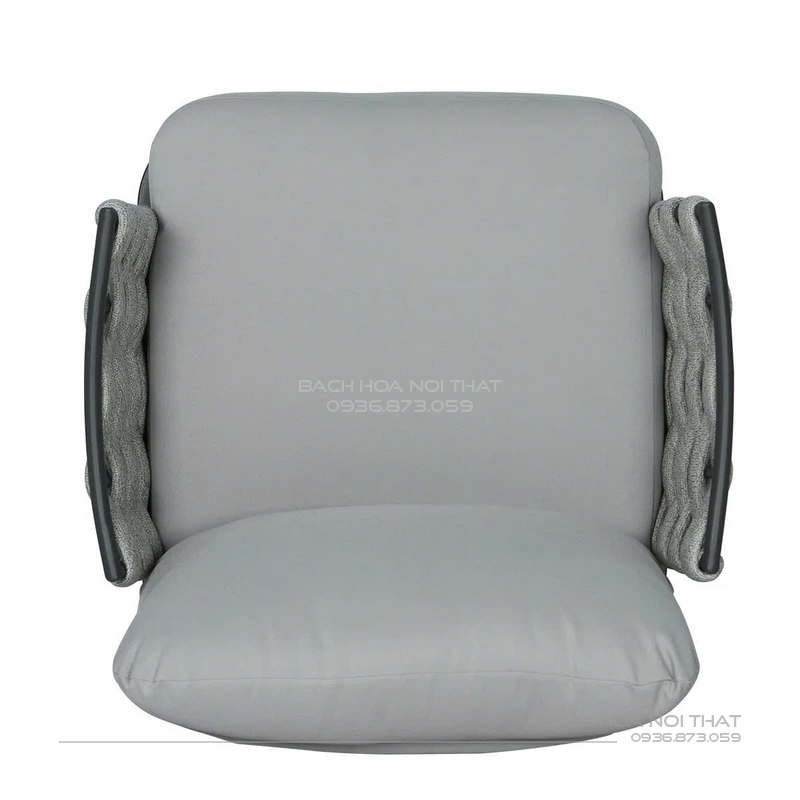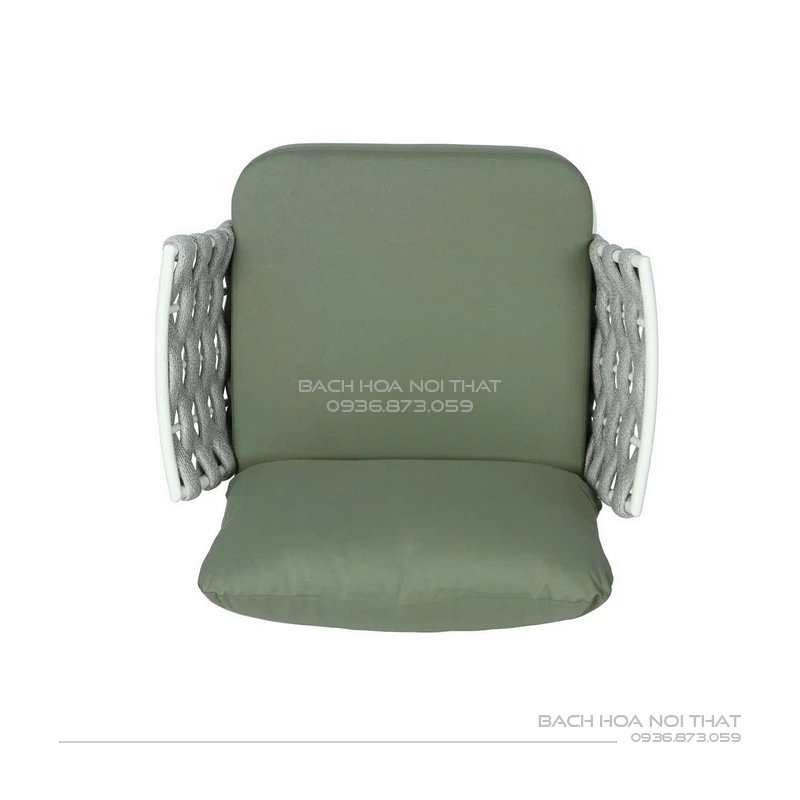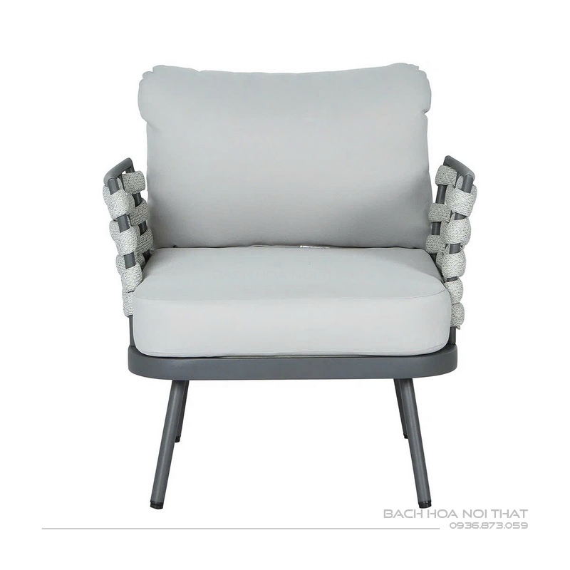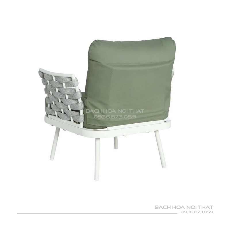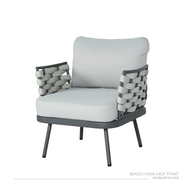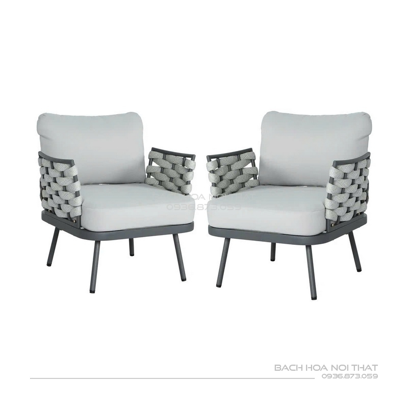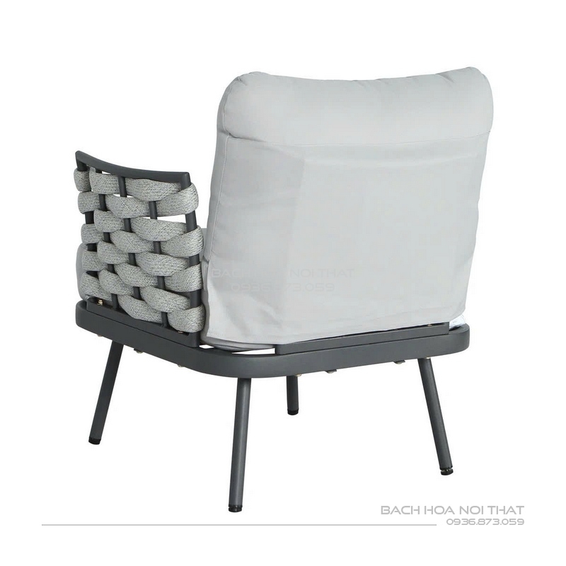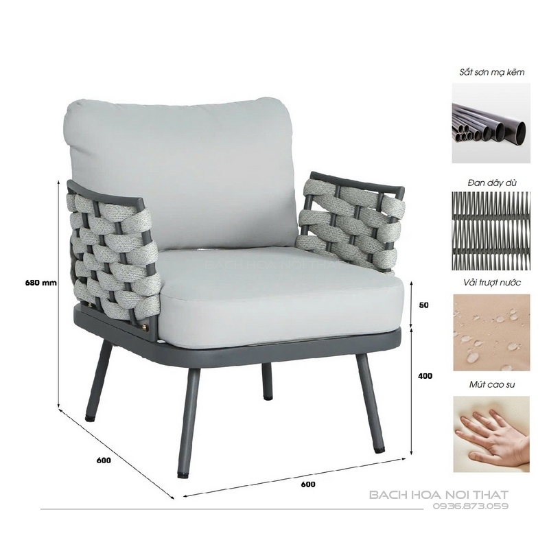 4. Chất liệu: Khung sắt sơn tĩnh điện đen, nệm cao su bọc vải trượt nước, đan dây.