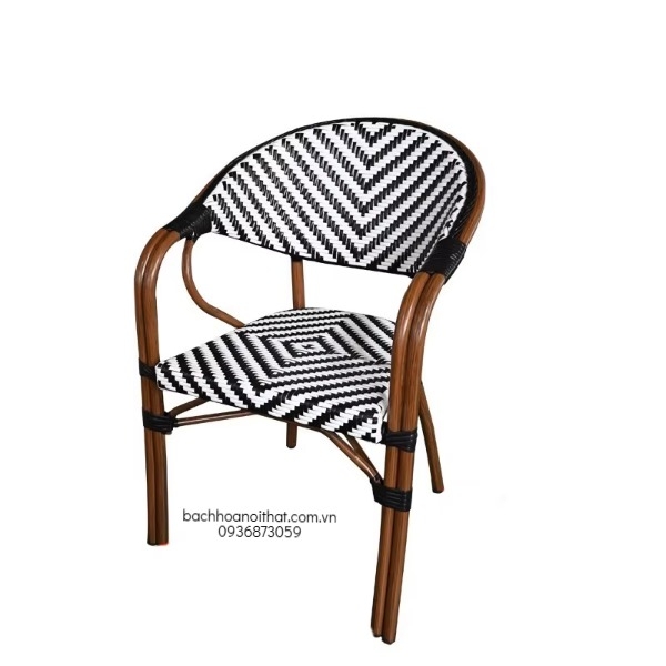 1. Chất liệu: khung ghế làm bằng hợp kim nhôm, tựa lưng và mặt ngồi ghế làm bằng nhựa giả mây