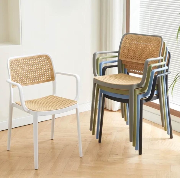 Hình 7. Ghế nhựa đan mây có thể xếp chồng lên nhau