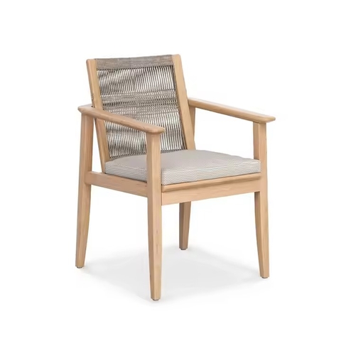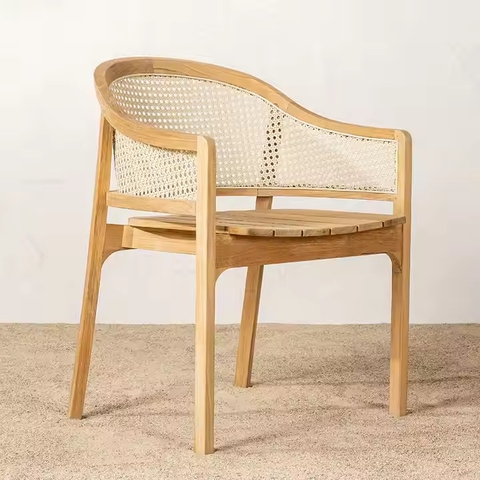 Khung ghế có thể sử dụng gỗ tràm, gỗ keo hoặc gỗ teak - loại gỗ nhập khẩu từ Lào. Lưng ghế hoặc nệm ghế đan dây thừng sử dụng ngoài trời hoặc nệm dùng vải textilen, vải chống thấm nước ngoài trời.