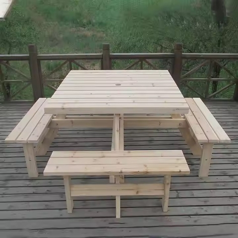 Hình 24. Bàn ghế gỗ thông ngoài trời không sơn, màu tự nhiên