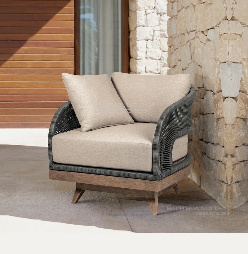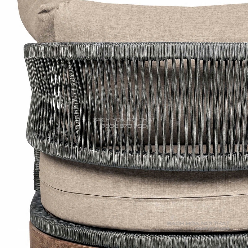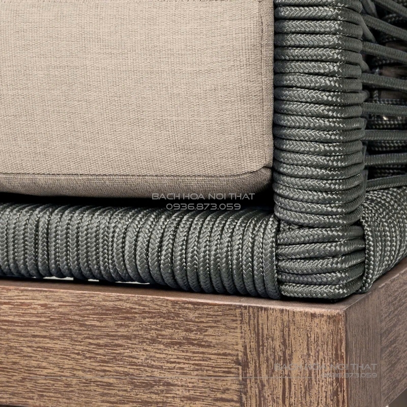 4. Chất liệu: Khung sắt sơn tĩnh điện đen, nệm cao su bọc vải trượt nước, đan dây.