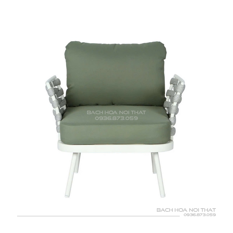 4. Chất liệu: Khung sắt sơn tĩnh điện đen, nệm cao su bọc vải trượt nước, đan dây.
