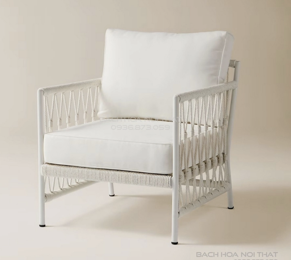 Ghế sắt ngoài trời – Khung sắt sơn tĩnh điện, đan dây dù, nệm ngồi ngoài trời