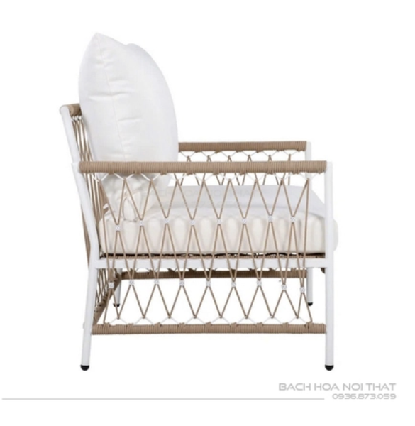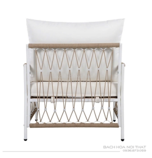 4. Chất liệu: Khung sắt sơn tĩnh điện đen, nệm cao su bọc vải trượt nước, đan dây.