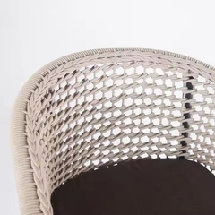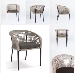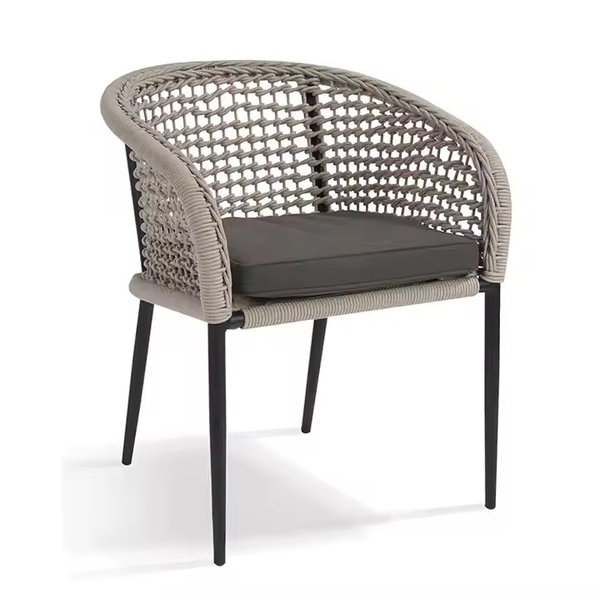 Ghế sắt ngoài trời đan dây sử dụng loại dây nhựa pp nhân tạo hoặc dây thừng bện, đan vào nhau với liên kết chắc chắn.