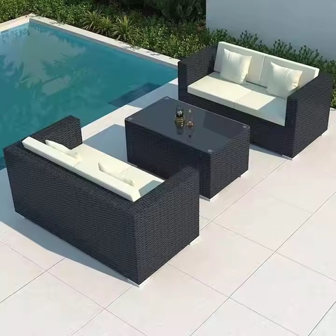 Bộ ghế sofa ngoài trời đan dây dù có nệm để cạnh hồ bơi