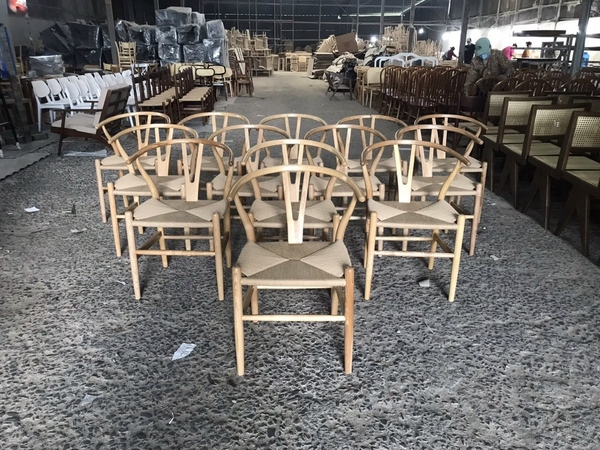 Hình 1: Ghế ăn wishbone đan dây gỗ tần bì sơn màu tự nhiên tại Bách Hóa Nội Thất