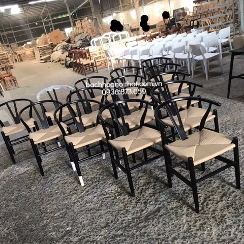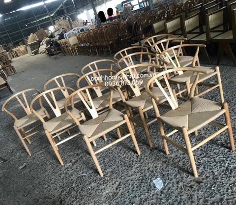 Ghế ăn wishbone gỗ tần bì mặt ngồi đan dây: