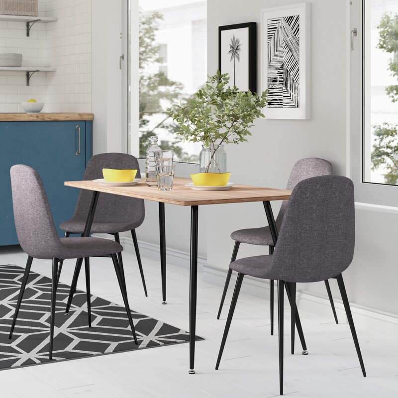 Bộ bàn ăn gỗ chân sắt kết hợp 4 ghế ăn bọc nệm